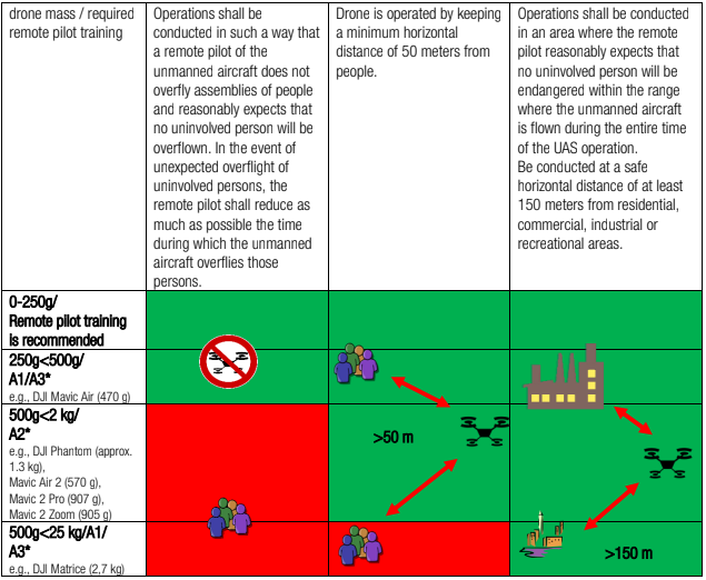 PLEASE NOTE: After the transition period, these drones will be able to perform operations exclusively in subcategories A1 (drone mass <250 g) and A3 (drone mass <25 kg) of open category or in a special category!