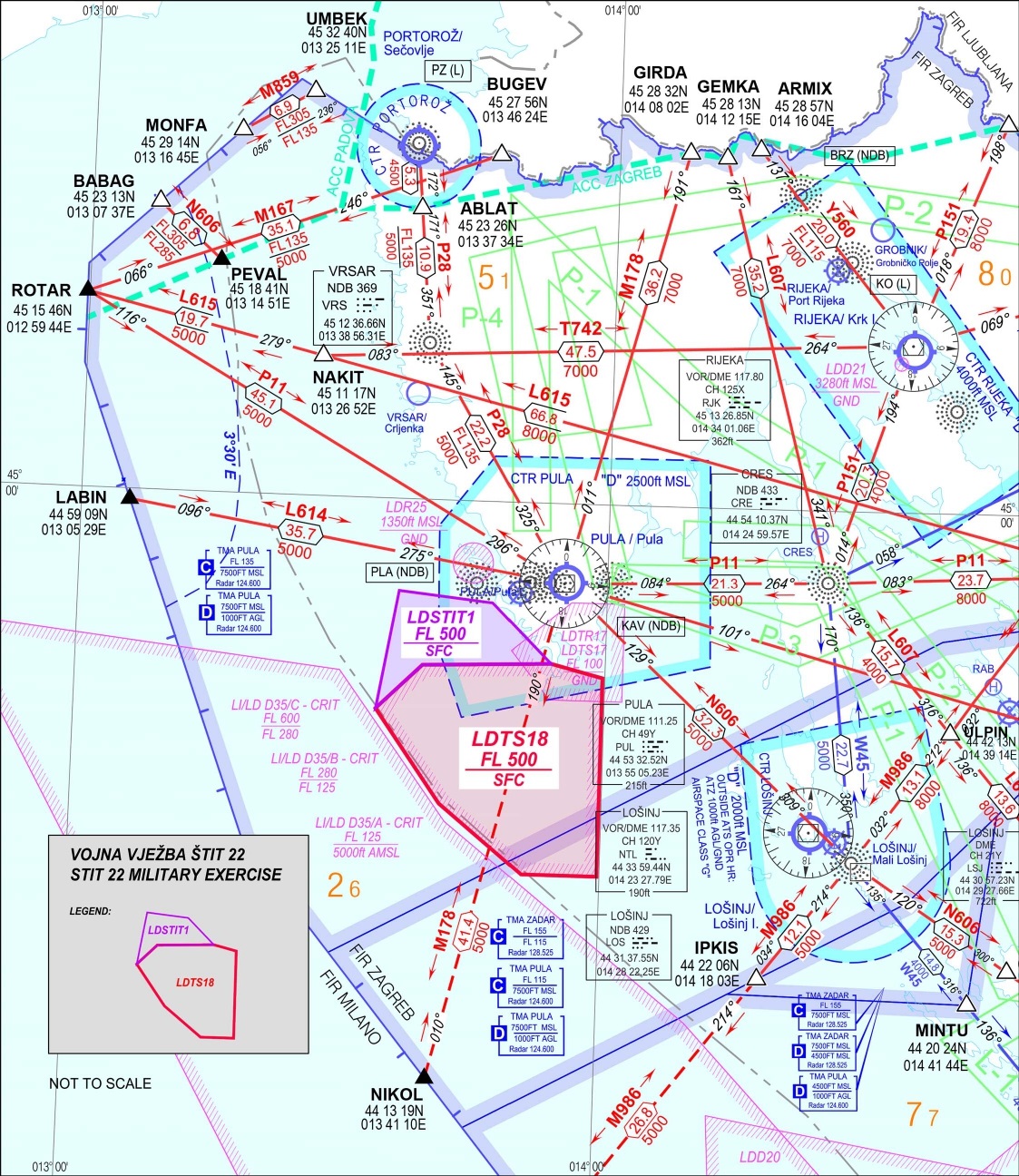 Za vrijeme provedbe vježbe korisnici zračnog prostora mogu očekivati aktivaciju vojne zone LDTS18 od SFC do 33000 ft (AMSL) i zone LDSTIT1 od GND do FL500.